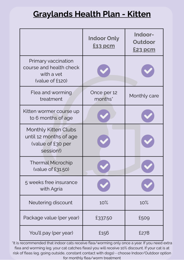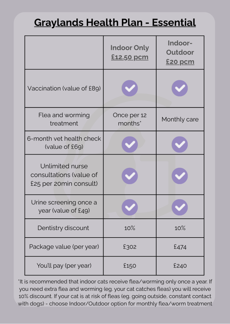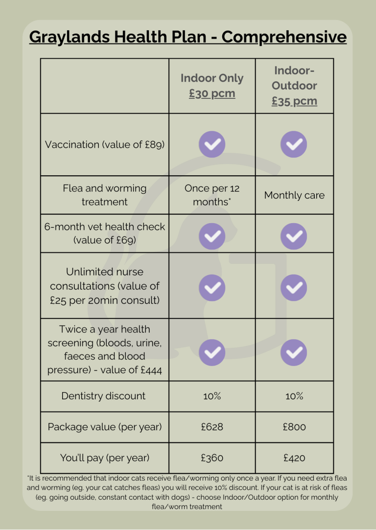 We now offer FREE first consultation for cats when they sign up to the Graylands Health Plan!